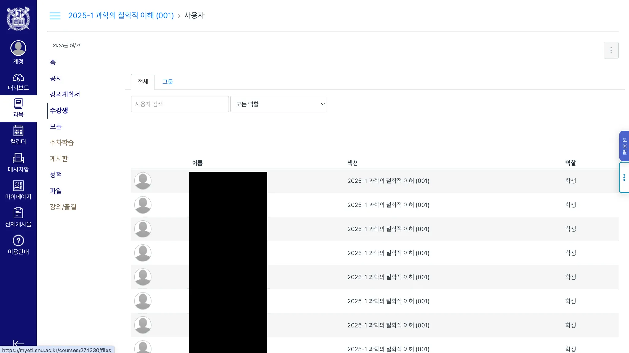 강의 참여자 목록 (수강생, 교수님, 조교님)