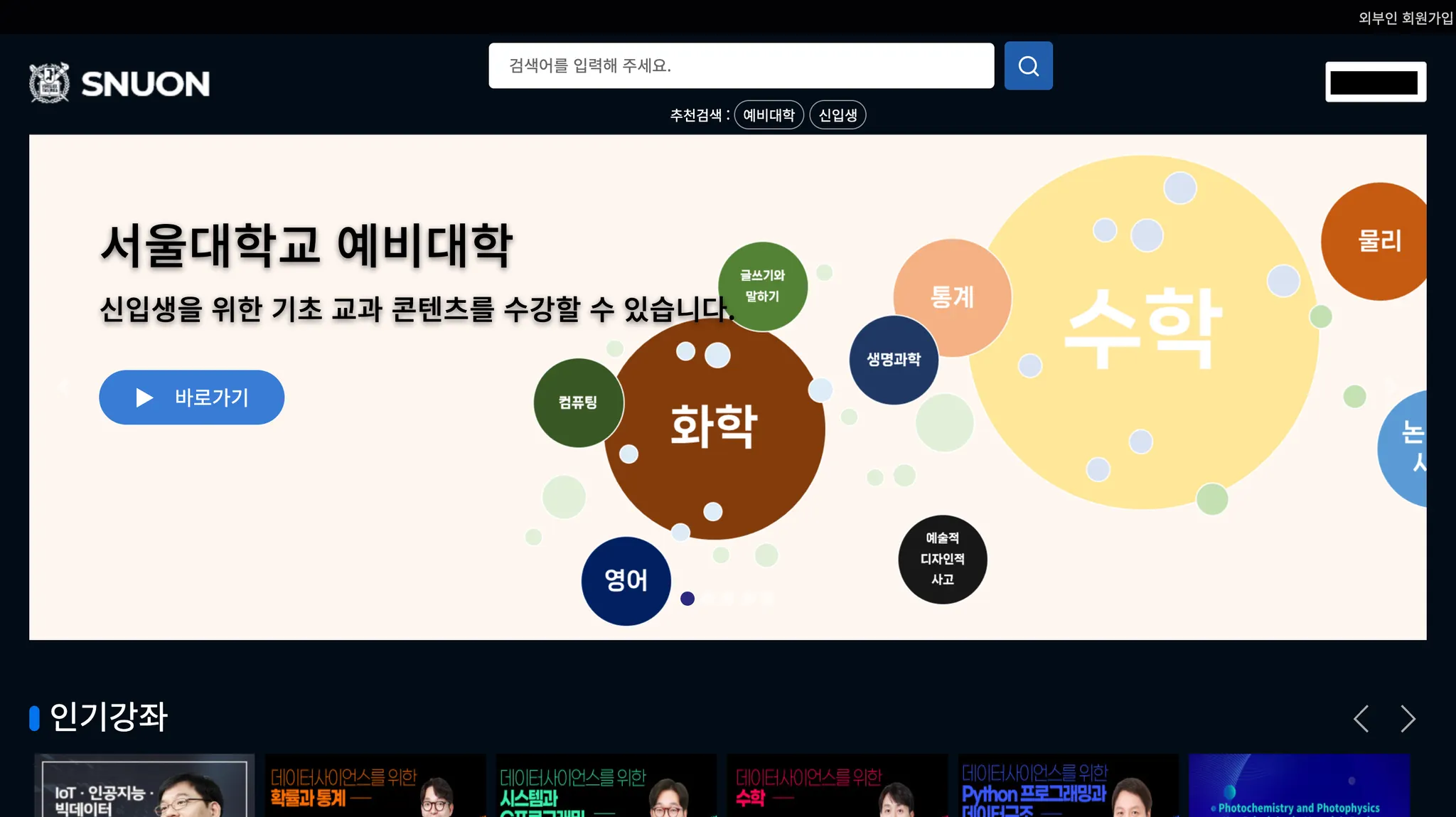 'SNUON 사이트에서 검색어를 입력해 원하는 수업을 수강할 수 있다.