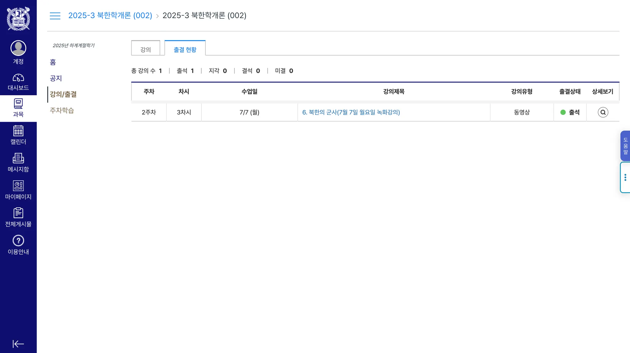 학습 진도율 및 출석 현황을 확인할 수 있다.