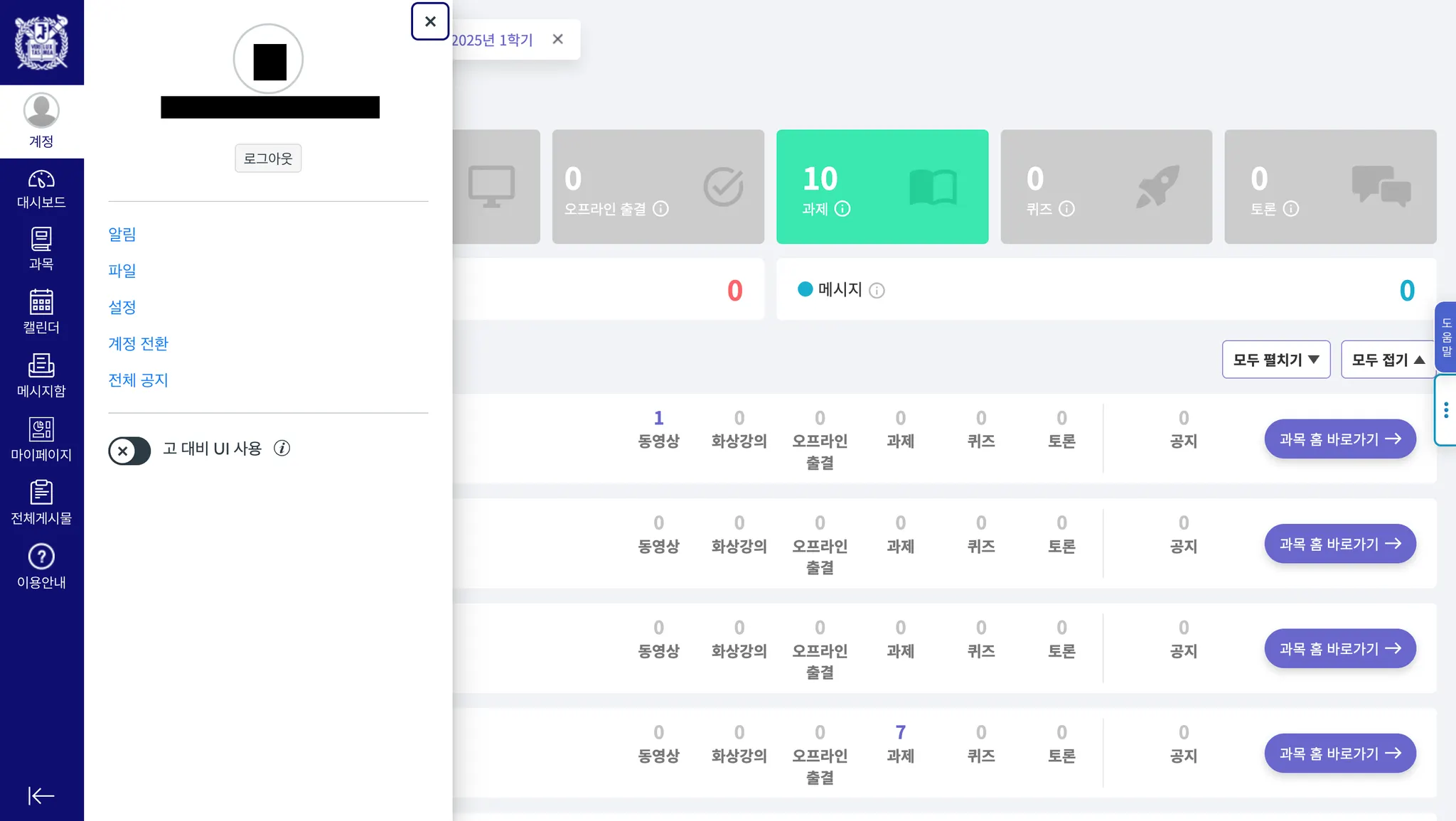 이전 학기의 과목도 남아있어서, 시간이 지난 후에도 확인할 수 있다.