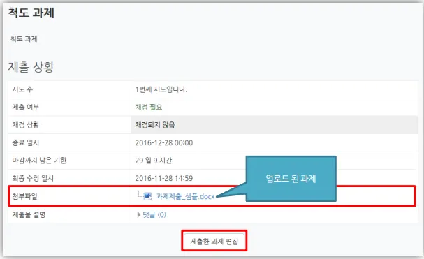 과제 업로드 후, 제출 마감일까지 과제물을 편집할 수 있다.