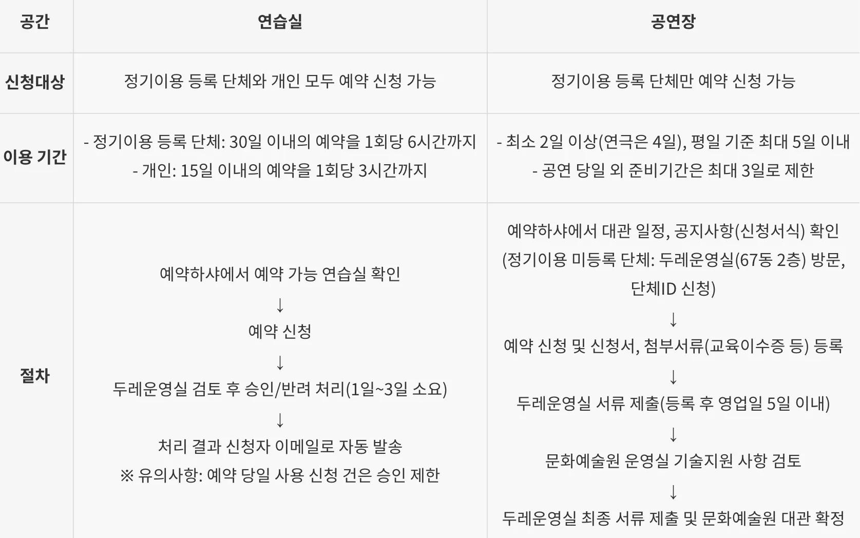 대관 신청 조건