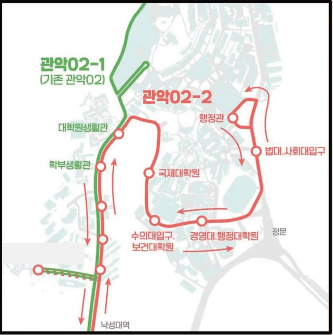 낙성대역에서 후문, 기숙사삼거리, 에너지자원연구소, 신소재연구소를 거쳐 제2공학관(윗공대)까지 간 다음, 다시 낙성대역 방면으로 후문을 통해 나온다. 과거 관악 02 버스였지만 관악 02-2 노선이 신설된 후 관악 02-1로 불린다.